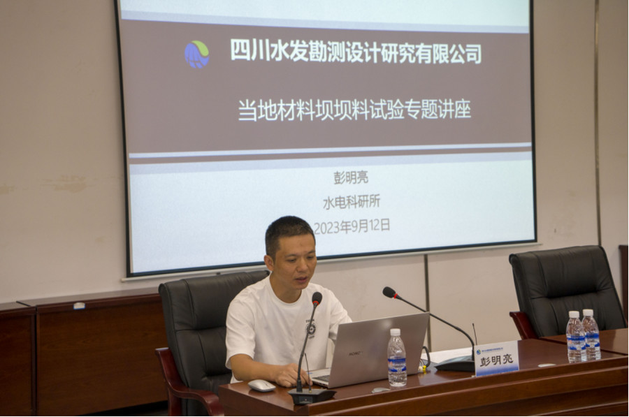 在講授中,陸恩施作“從水布埡、天生橋、紫坪鋪等工程看面板壩填筑標(biāo)準(zhǔn)和經(jīng)驗(yàn)分享”,彭明亮作“當(dāng)?shù)夭牧蠅螇瘟显囼?yàn)技術(shù)專題交流(粗粒土試驗(yàn)、細(xì)粒土試驗(yàn)、泥質(zhì)巖防滲料)”。兩位主講人將豐富的實(shí)踐經(jīng)驗(yàn)同理論相結(jié)合,深入淺出的將當(dāng)?shù)夭牧蠅翁钪霸囼?yàn)技術(shù)做了交流分享,干貨滿滿的課程令在場(chǎng)職工獲益匪淺。
