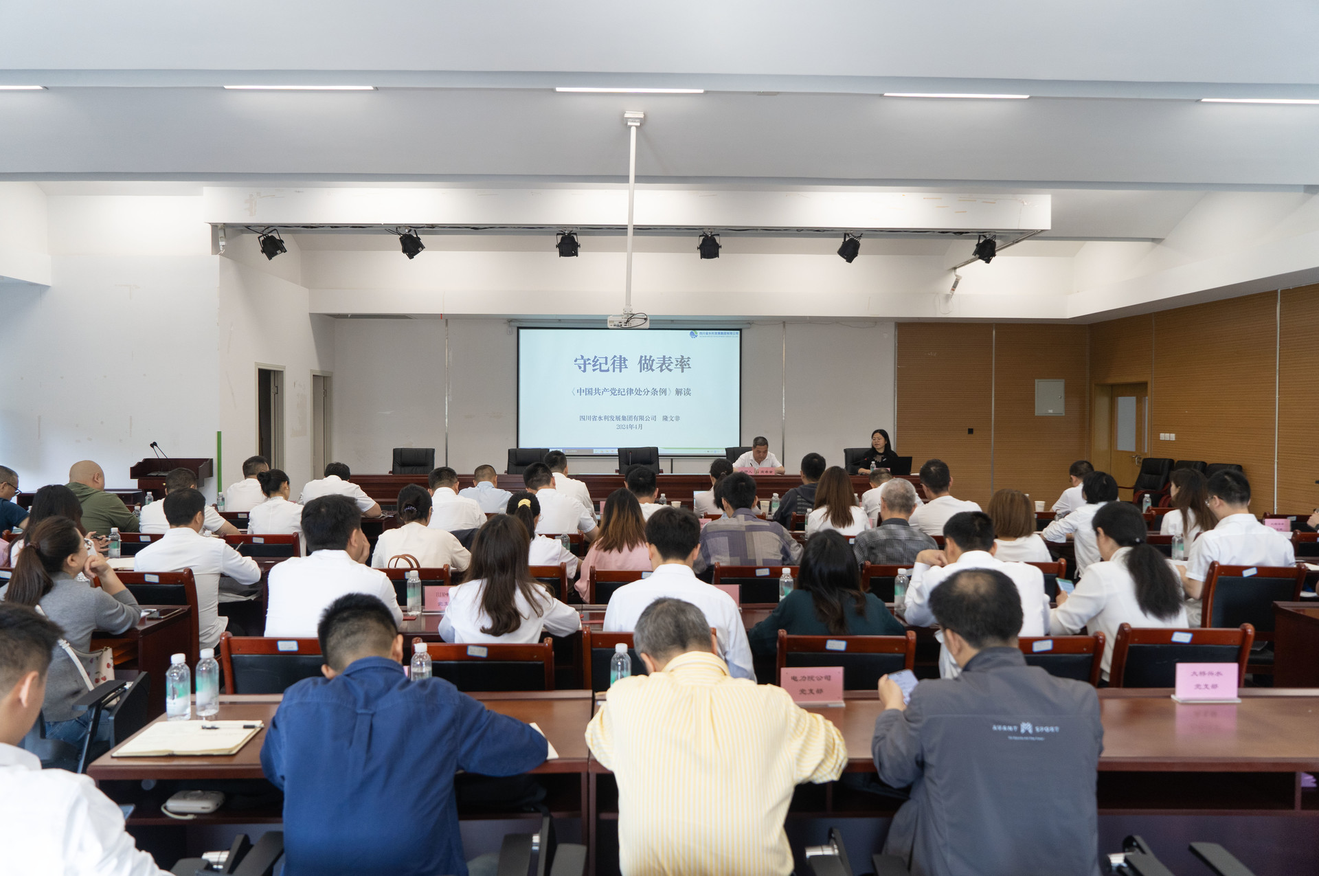 隆文非以《守紀律做表率》為題,圍繞《條例》的發(fā)展歷程、重大作用和意義、主要特點、主要內(nèi)容等四個方面,結合典型案例、集團的實際進行解讀,給大家?guī)硪惶孟到y(tǒng)全面、生動詳實的黨課。