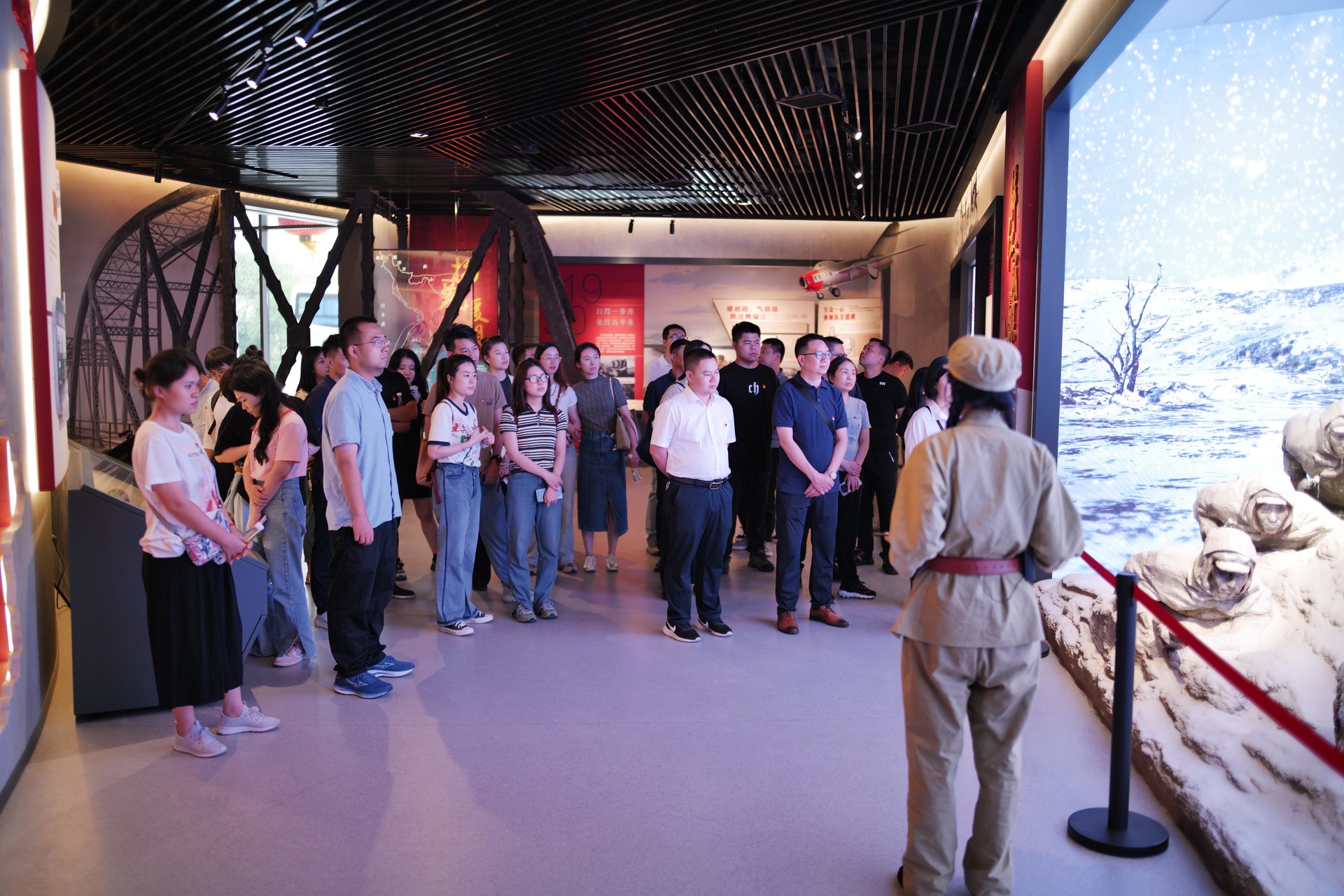 在活動現場,“抗美援朝保家園、鮮紅戰旗美如畫、勇士輝煌化金星、繼往開來譜新篇”四個展覽單元全面展示了一幅中國人民志愿軍奪取抗美援朝戰爭偉大勝利的歷史長卷。黨員們沿著紅色文化長廊前行,認真傾聽那些驚心動魄的戰斗故事,觀看全息投影和實景搭建的戰斗現場,沿著英雄們的足跡,追尋那段不朽的歷史記憶,身臨其境地感受了戰爭的激烈與殘酷,深入感悟英雄的豪邁愛國情懷以及“忠孝勤儉、敬業守法、誠實友愛、葆真求善”的家風內涵。