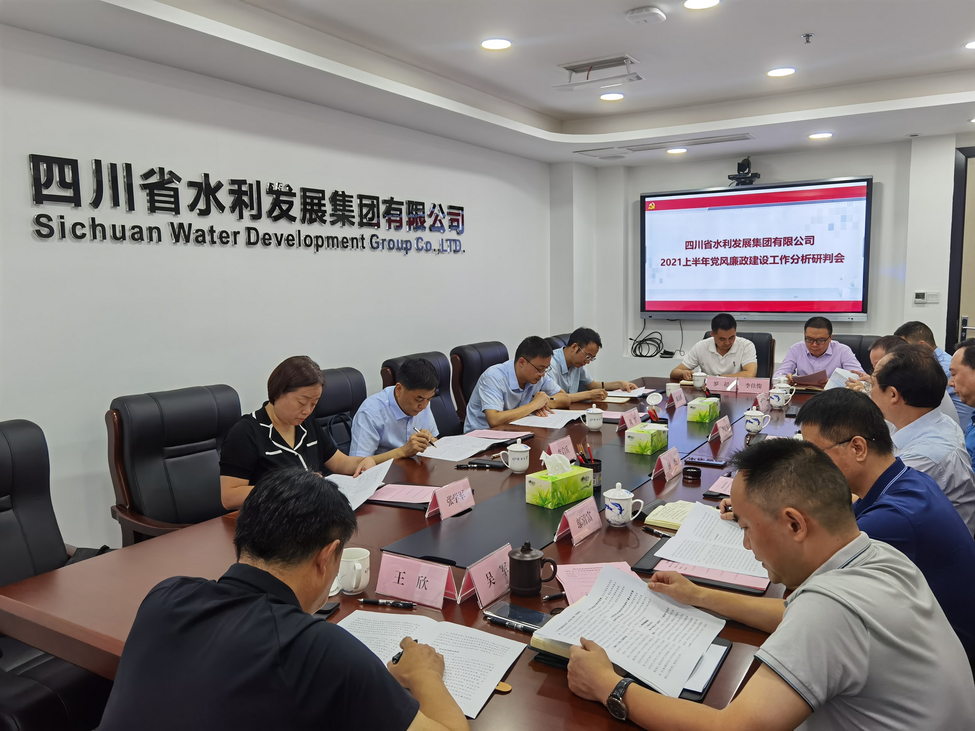 2021年7月15日上午,省紀委監委駐水利廳紀檢監察組組長、廳黨組成員李啟兵一行4人蒞臨集團,專題聽取集團黨委上半年黨風廉潔建設工作分析研判報告,指導集團黨風廉潔建設工作。集團黨委書記、董事長鐘杰以及集團黨委班子成員、集團紀委委員、辦公室主任、紀檢監察部全體人員參加會議。